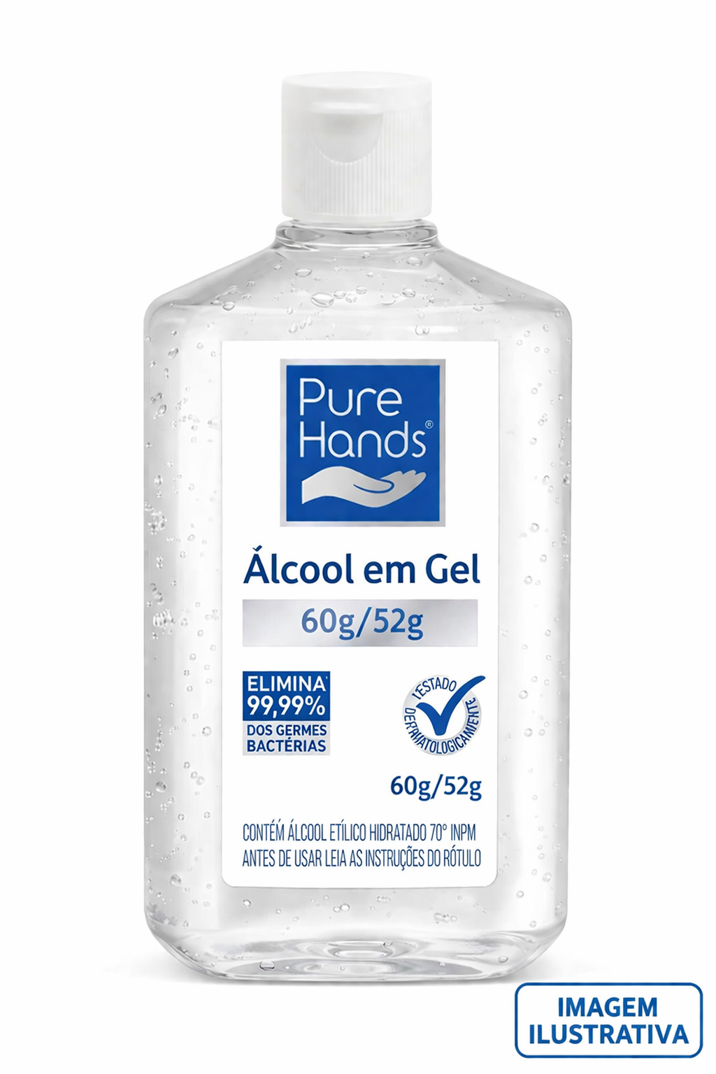 O álcool gel Pure Hands 60g (52g líquido) é ideal para higienização das mãos sem necessidade de enxágue. Prático e eficiente, elimina germes e bactérias, sendo perfeito para uso no dia a dia, em casa, no trabalho ou em deslocamentos. Possui secagem rápida e não deixa as mãos pegajosas.