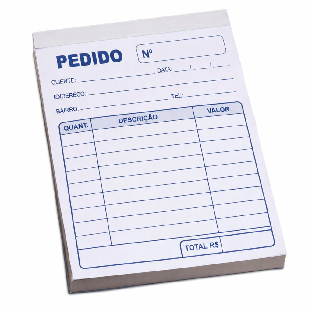 Fabricado em papel de qualidade, permite registrar informações de pedidos, produtos e valores de forma prática e organizada.