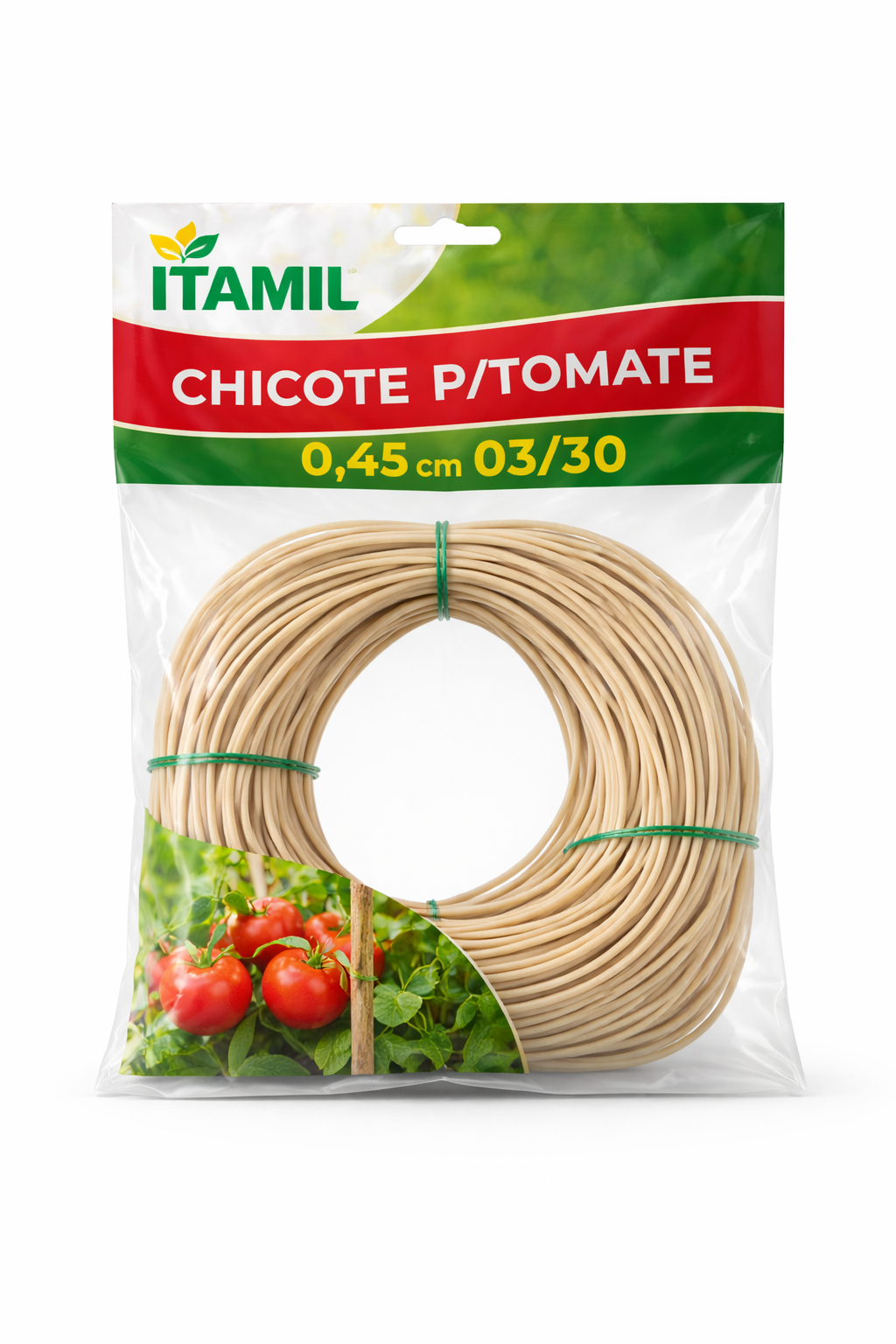 O chicote para tomate 0,45 cm é utilizado para amarração e sustentação de plantas, especialmente no cultivo de tomates e outras hortaliças. Produzido em material plástico resistente, oferece praticidade no manuseio e excelente fixação, auxiliando no crescimento organizado das plantas.