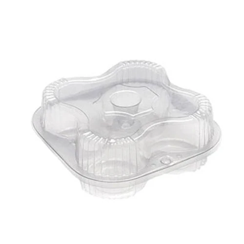 Fabricada em plástico transparente, valoriza o produto e é muito utilizada em confeitarias, festas e vendas para presente.