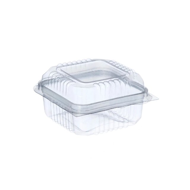 Fabricada em plástico transparente de alta qualidade, possui tampa articulada que facilita o fechamento e protege o alimento durante o transporte. O formato quadrado valoriza a apresentação de doces, permitindo ótima visualização do produto.