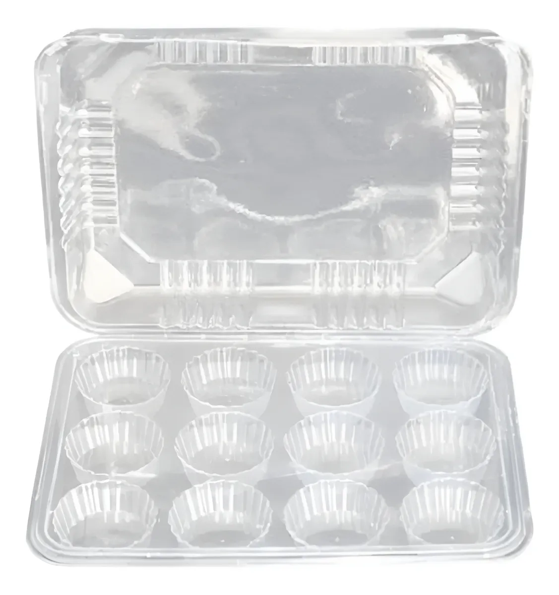 Fabricada em plástico transparente, valoriza o produto e é amplamente utilizada em confeitarias, festas e vendas para presente.