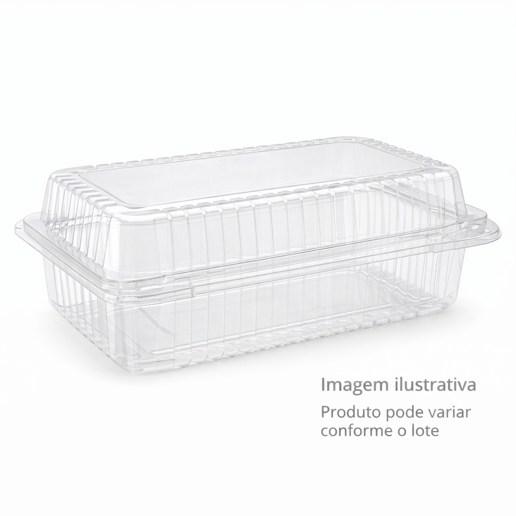 Fabricada em plástico transparente resistente, possui tampa articulada que facilita o fechamento e protege o alimento durante transporte e armazenamento. Seu material permite ótima visualização do produto, valorizando a apresentação para venda em confeitarias, padarias e delivery.