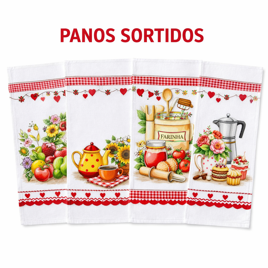 O Pano de Prato Bainha Grande Impresso 44 × 68 cm é ideal para uso na cozinha, auxiliando na secagem de louças, utensílios e limpeza de superfícies.