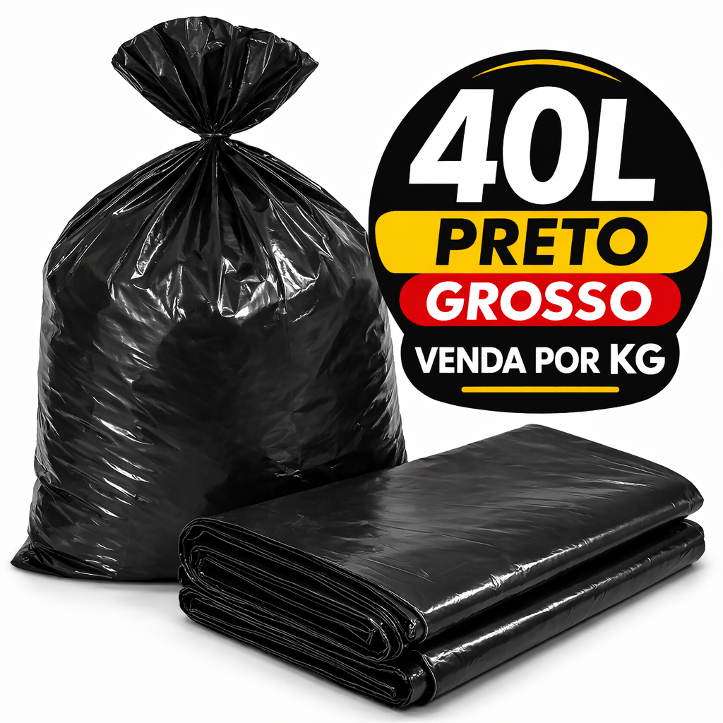 O Saco de Lixo Preto 40 Litros Reforçado é ideal para uso doméstico, comercial e industrial, oferecendo resistência e segurança no descarte de resíduos.