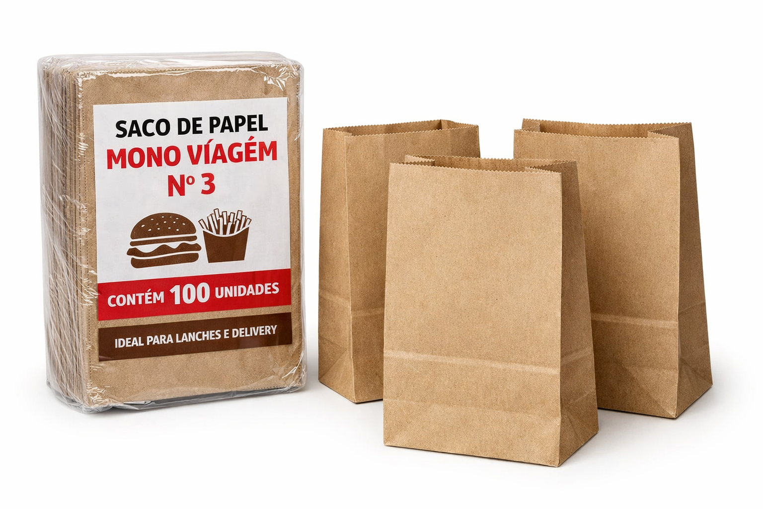 O Saco de Papel Mono Viagem Nº 3 é ideal para embalar lanches, porções e alimentos em geral com praticidade e higiene. Produzido em papel resistente, é muito utilizado em lanchonetes, padarias, restaurantes e serviços de delivery. Seu formato funcional facilita o acondicionamento de alimentos, garantindo organização e apresentação adequada ao cliente. Produto descartável, leve e econômico, perfeito para uso diário.